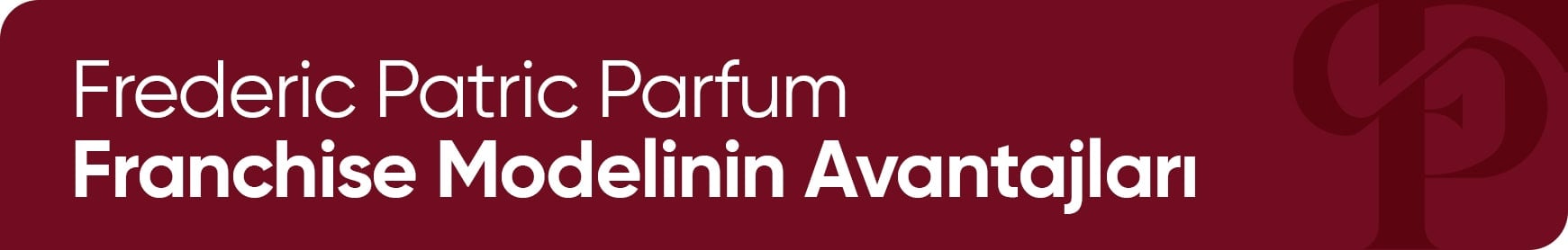 Frederic Patric Parfüm Franchise modeliyle siz de kendi işinizin sahibi olun. Sizi prestijli ve kârlı bir iş dünyasının kapılarını aralıyoruz.Sunduğumuz Franchise imkânı ile markamızın güçlü imajı ve geniş müşteri kitlesine erişim imkanı sunarak işinizi hızla büyütme fırsatı sağlıyoruz. Frederic Patric Parfum olarak sizlere parfüm dünyasında sürdürülebilir ve başarılı bir iş yolculuğuna çıkmanız için ideal bir ortaklık sunuyoruz.